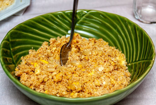 De la farine de manioc grillée mélangée avec du beurre, des oignons, parfois des œufs ou du bacon. Ça s’ajoute sur tout : viandes, riz, haricots… un peu comme des paillettes salées. Sans farofa, un repas brésilien est considéré incomplet.