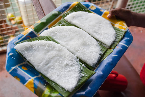 Rien à voir avec les perles asiatiques : ici, c’est une galette blanche faite de farine de manioc chauffée à sec. On la garnit sucrée (lait concentré, noix de coco, banane) ou salée (fromage, jambon, poulet, tu choisis). C’est léger, rapide, et tellement pratique que ça finit toujours dans ton assiette tôt ou tard.